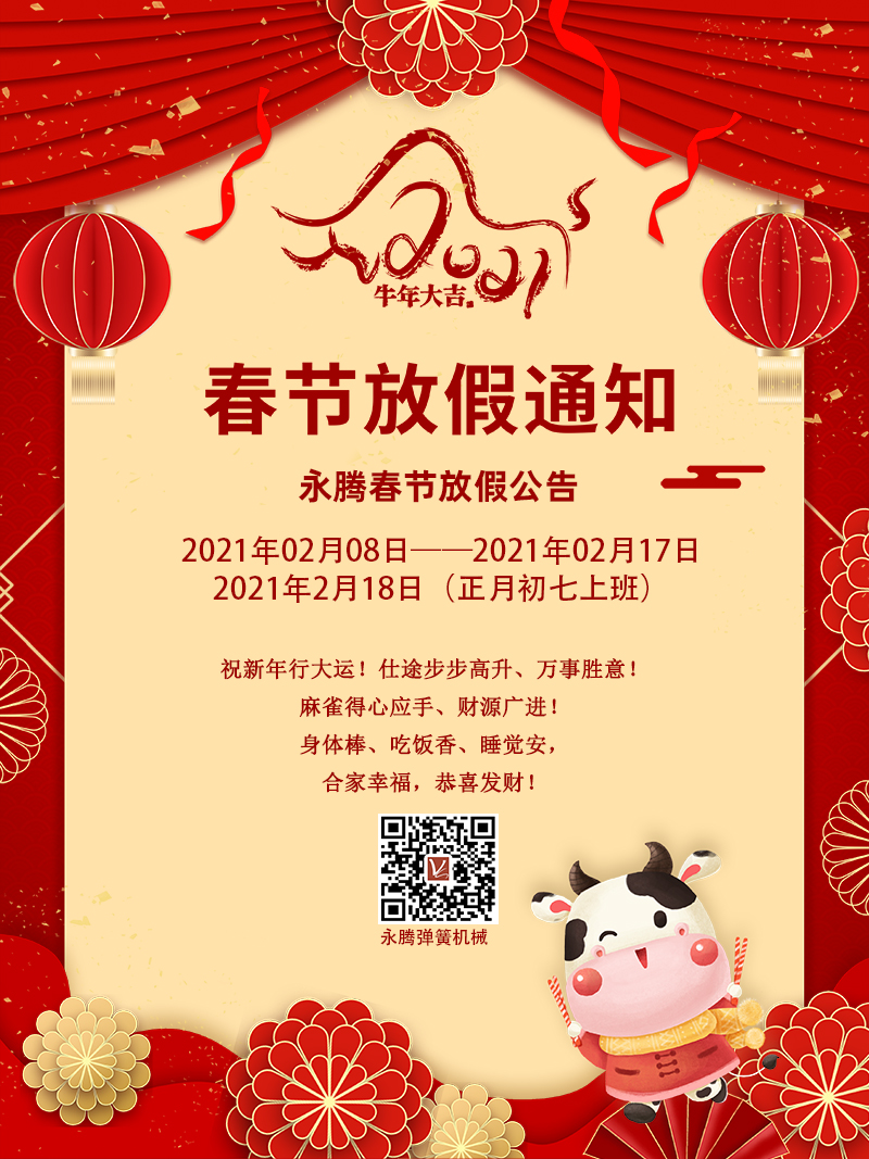 永腾弹簧机械春节放假通知 东莞永腾自动化设备有限公司